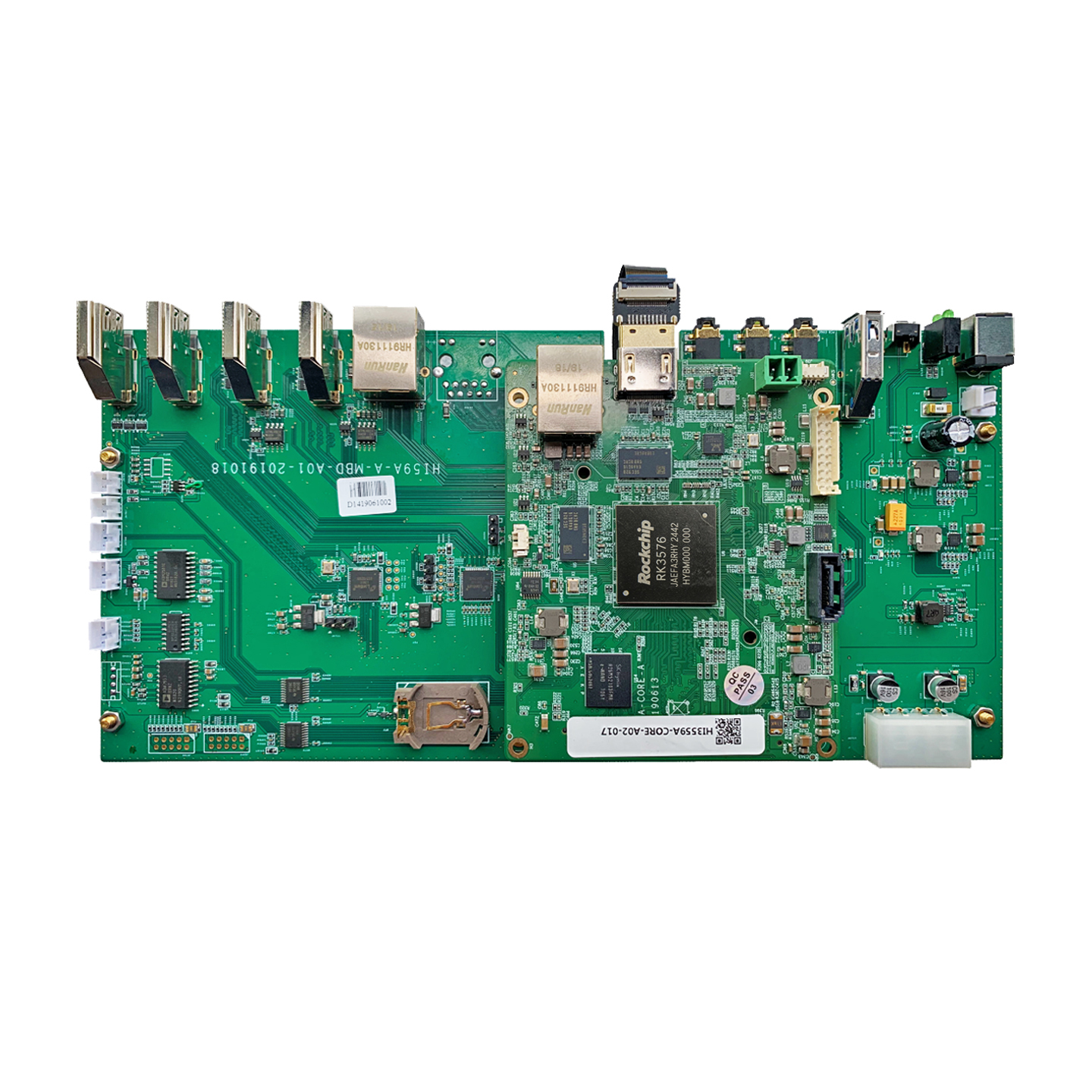 性能与应用介绍 本款基于瑞芯微 RK3576 打造的定制开发板,搭载 8 核异构 CPU(4 核 Cortex-A72 最高 2.2GHz + 4 核 Cortex-A53 最高 1.8GHz),搭配 6.0Tops 高算力 NPU,可高效支撑 AI 视觉分析、边缘计算等场景。硬件配置 8GB DDR4 内存 + 16GB EMMC 存储,运行流畅稳定。板载 2 路千兆网口、4 路 HDMI 接口(2 路 MIPI 输出、2 路 HDMI 输入)、2 路 USB2.0 HOST、3 路 SATA 接口,同时配备 RS232、多组调试串口及丰富引脚,满足多屏显示、数据扩展、二次开发需求。尺寸 154×113mm,支持 0℃~70℃宽温工作,适配工业安防、智能终端、AIoT 等多场景定制开发。产品外观 rk3576定制开发板-正面图 2、硬件资源描述项目类型型号参数 说明核心配置处理器RK3588CPU:4核Cortex-A72(最高2.2GHz) + 4核Cortex-A53(最高1.8GHz)智能视频分析NPU:6.0Tops 神经网络运算性能存储内存DDR4:8GB存储EMMC:16G连接器核心板连接器:J41FX10A-120S-SV (21)主板接口HDMI 接口4MIPI OUT2, HDMI IN2 FAN 接口1串口RS2321串口MCU_JTAG1串口ARM_JTAG1串口DEBUG1串口USB 接口2USB2.0 HOST 接口MASKROM1RECOVERY1PMIC_PWR_ON1网口 210/100/1000 兆SATA 3 2数据接口、1供电接口工作环境操作温度:0℃~+70℃;湿度:RH40%~RH90%(不结露)软件规格参数 UBOOT启动方式支持从eMMC 启动烧录方式调试串口Kernel版本linux 4.19支持的文件系统ext4/nfs/yaffs2/ubifs下载方式串口/网口Device DriverSerial port串口驱动Ethernet10/100 以太网卡驱动USB hostUSB 2.0 host 驱动OUPTHDMI 输出驱动eMMCeMMC 驱动DDRDDR驱动TCP/IP提供完整的TCP/IP 协议配置系统和服务Ifconfig/route等用于网络配置及相关服务程序文件系统常用命令cat、chmod、echo、free、top、kill、ls、mkdir、mount、ps、reboot、rm、lsmod、rmmod 等工作环境环境参数 最小值 典型值最大值商业级温度0℃/ 70℃储存温度-10℃25℃85℃工作电压11.7V12V12.5V功耗典型电压典型电流典型功耗12VTBDTBD技术支持及资料1、开发资料 提供基于核心板的产品设计手册,包括硬件设计、系统移植、驱动开发、 应用软件开发环境。资料包括载板的原理图、PCB、驱动源码、内核源码 等供用户设计参考,产品开发速度提高 50%以上。 提供主芯片数据手册、软件开发环境、软件开发 SDK 包。 提供 vdec 等丰富的 Linux 例程。 提供 Linux+Qt 开发环境,快速进入 Qt 应用软件开发。2、技术支持 协助判断产品是否存在故障 RV1126 开发板产品软硬件资源解释 帮助正确地编译与运行我们提供的源代码 按照产品文档资料,解决主板内出现的异常问题3、增值服务 根据用户需求完成定制硬件及软件开发 支持 Linux 系统定制 支持 OEM/ODM 定制 支持项目外包开发 查看更多